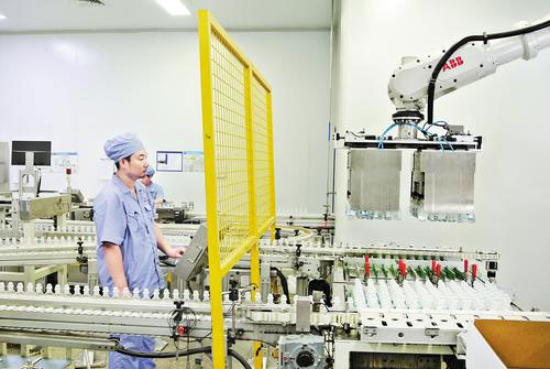 在该公司智能工厂,记者看到,数十条自动化生产线高速运转,多台自动引导输送机器人穿梭运输废料,工业相机以200帧速度扫描药瓶,实时检测缺陷。